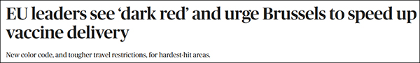 “歐盟領導人敦促布魯塞爾提高疫苗分發速度”,新聞網站“政客”報道截圖