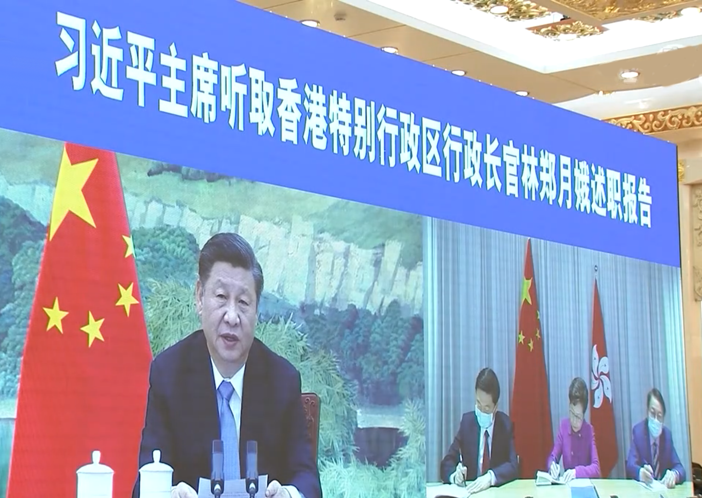 央視新聞客户端1月27日消息,國家主席習近平27日下午在北京以視頻連線方式聽取了香港特別行政區行政長官林鄭月娥2020年度的述職報告。林鄭月娥彙報了香港特別行政區政府過去一年工作和新冠肺炎疫情防控等情況。