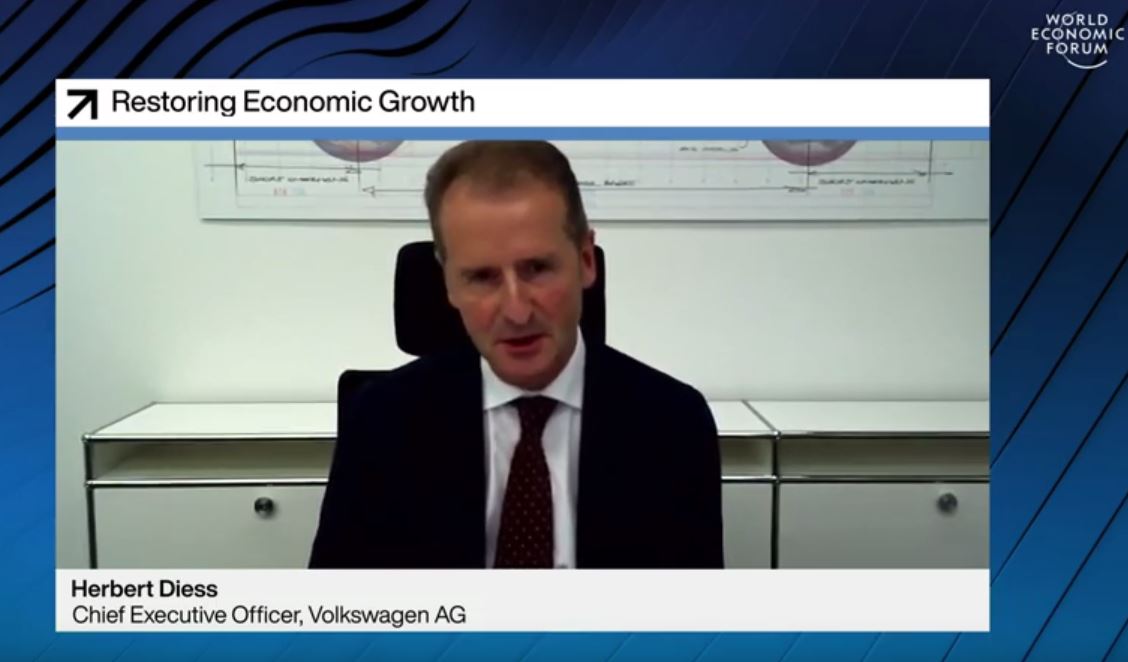 據德國《世界報》(Die Welt)當地時間1月26日報道,德國大眾公司總裁迪斯(Herbert Diess)在論壇的一場對話中,稱讚中國“正走在正確的道路上”,而一同出席會議的德國經濟部長阿爾特邁爾(Altmaier)也贊同了迪斯的看法。