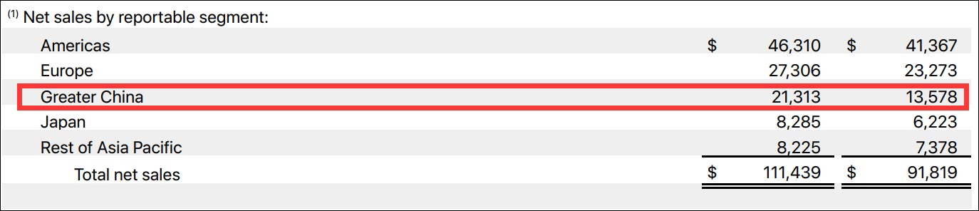 最終,中國市場的銷售情況並未讓庫克失望。財報顯示,2021財年第一季度,該公司來自大中華區的營收為213.1億美元,同比增長57%,去年同期為135.8億美元;北美市場營收同比增長12%;歐洲市場營收同比增長17%;日本市場營收同比增長33%;亞太其他地區營收同比增長11%。