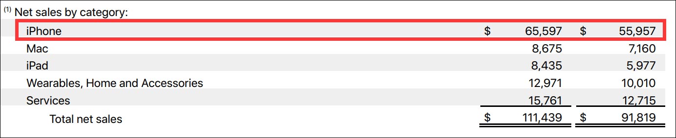 蘋果創紀錄的營收主要歸功於iPhone銷量同比增長17%,達到656億美元。不過,iPhone並不是增長的唯一推手,在居家辦公和遠程教學等需求的推動下,該公司其他產品也出現兩位數的同比增長,包括Mac、iPad、可穿戴設備和服務等。
