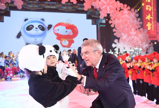 巴赫出席2022北京冬奧會、冬殘奧會吉祥物發佈儀式。