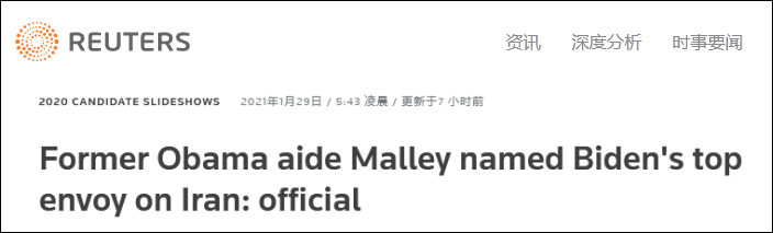 報道稱,拜登的這一人事任命,將讓馬利成為特朗普時代美伊關係惡化後,美方與伊朗打交道的焦點人物。