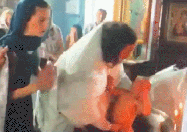 2019年,俄羅斯一名東正教神父因在給嬰兒洗禮時動作過於粗暴,被停職一年。網友稱其行為更像是在“驅魔”。