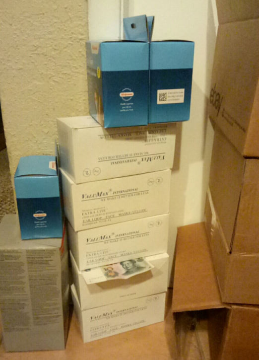 那天我回家早,發現聯邦快遞員正在朝我門前堆着一個龐然大物。走近一看,正是我前不久寄出的1000個醫用外科口罩的大紙箱。我立即上前問他怎麼回事?他看了看隨箱子的海關清單,上面寫着我的地址是發件人不是收件人,也不明白為什麼要送回給我,就把箱子重新扛走了。