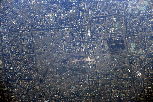 另一張是北京的太空航拍照片,故宮博物院、天壇公園等地標清晰可見。