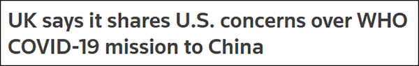 英國又附和美國跳了出來,聲稱對世衞在華工作表示“擔憂”