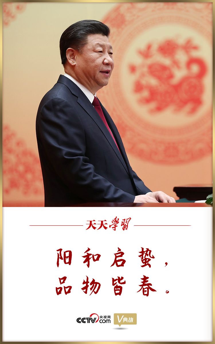 2018年,祖國大地春來早,立春剛過,春節將臨。在春節團拜會上,習近平總書記在講話開場即引用“陽和啓蟄,品物皆春”這一名句,描繪了祖國大地春風拂面、萬象更新的景象。