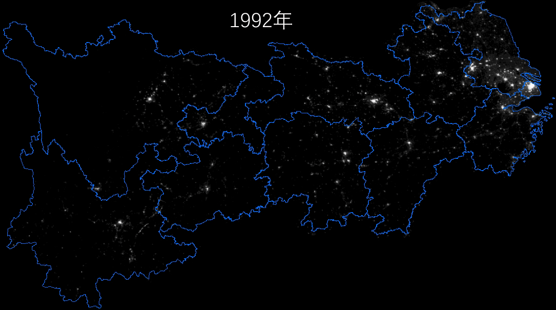 1992-2018年長江經濟帶夜光強度圖,圖自自然資源部國土衞星遙感應用中心網站