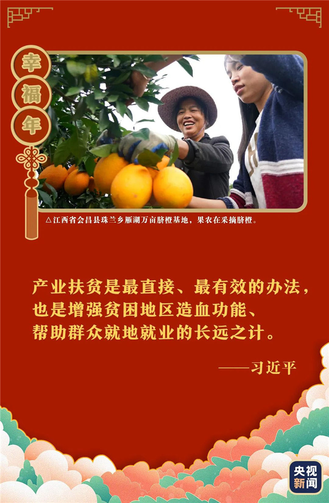 總書記帶來的幸福年,在穩穩的就業裏,在增長的收入裏,在紮實的保障裏,在喬遷的新居里,在興旺的產業裏,在農民的笑臉裏……在脱貧後的新生活裏。