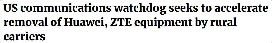 去年12月,FCC繼續要求美國運營商“拆除並更換”中興和華為設備,併為此設立了19億美元的“補償項目”。與此同時,該機構還針對中國電信採取行動,表示已啓動撤銷中國電信在美業務運營授權,宣稱還要採取進一步措施“打擊中國在美國電信業中所佔的角色”。