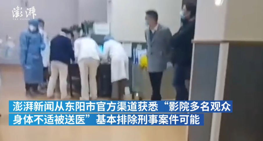 澎湃新聞還稱,該媒體從東陽市官方渠道獲悉“影院多名觀眾身體不適被送醫”基本排除刑事案件可能。