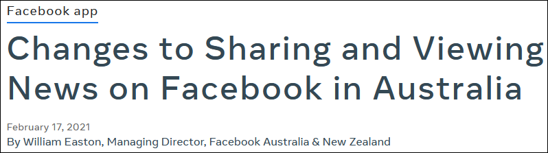 聲明指出,這一限制措施就是為了回應澳大利亞政府近期所提出的新法案。近期,澳大利亞議會預計將通過新法《新聞媒體協議規範》,該法要求臉書和谷歌等科技公司為其新聞內容向澳大利亞媒體付費。臉書認為,這一法案“從根本上曲解了”本方與新聞出版商之間的關係。