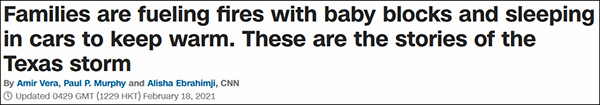 美國得克薩斯州超300萬人斷電,有家長被迫燒孩子玩具取暖