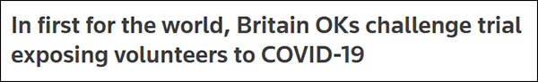 《紐約時報》指出,儘管科學界過去也曾讓志願者接觸傷寒、霍亂等疾病的病原體來測試疫苗,但這些疾病是有治癒方法的,而新冠病毒目前並沒有已知的療法,負責這項研究的英國科學家顯然已經一腳邁進了未知的倫理領域。