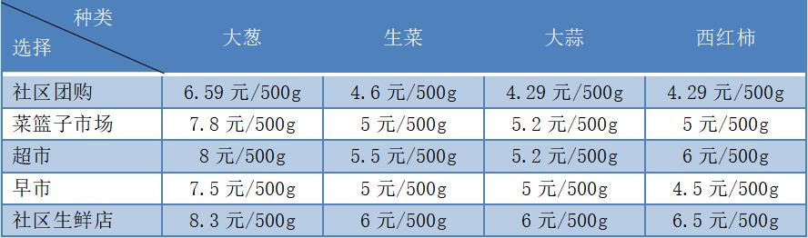 總的來説,當地同一種生鮮蔬菜商品的價格基本滿足這樣的關係:早市<菜籃子市場<大型商超<社區小店。