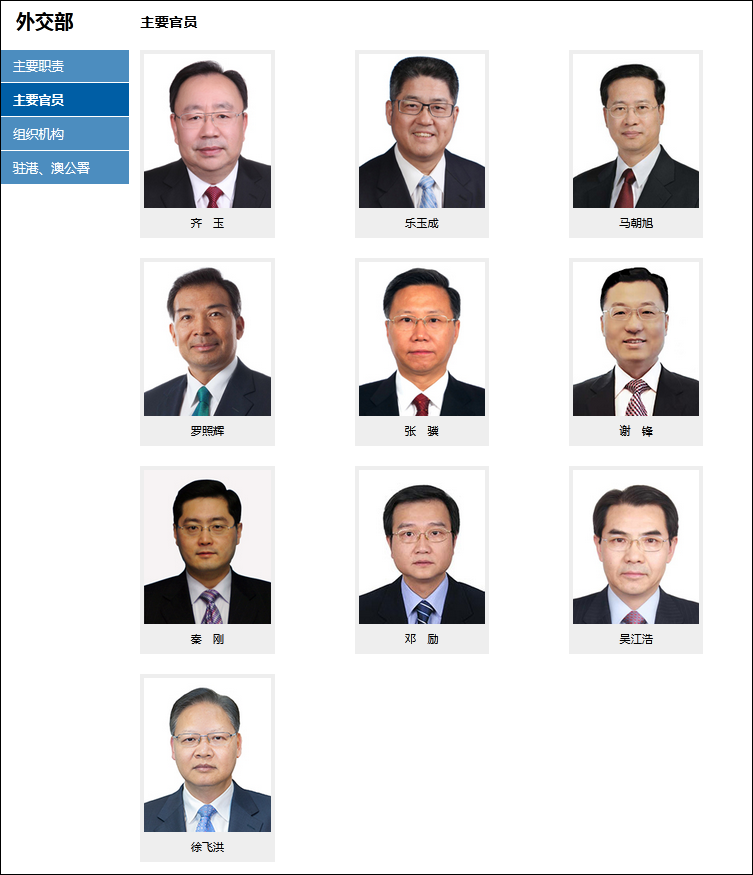 外交部網站“主要官員”欄目截圖