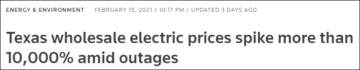 這種噩夢般的供需狀況,使得能源豐富的得州電價與極端天氣來襲前相比飛漲超10000%。當地發生了危及生命的停電事件,週二早上,該州有400多萬人無電可用。