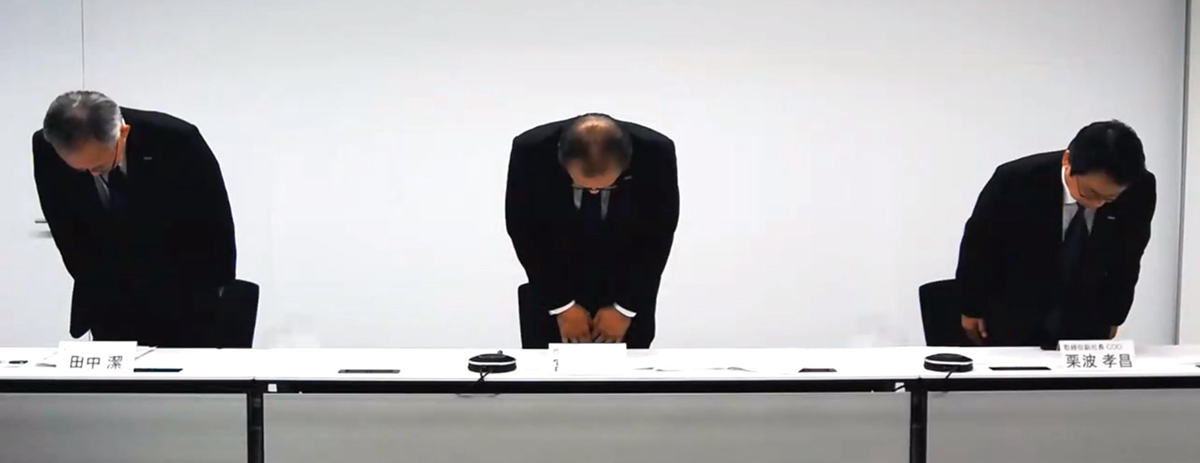曙光制動董事長宮地康弘(中)鞠躬致歉