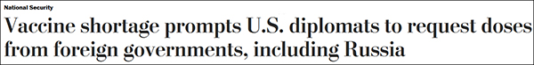 美國疫苗數量短缺的問題,已經迫使不少美國駐外人員轉而尋求其駐在國政府的幫助。一些美國駐外人員“就地”接種了駐在國購買的美國疫苗,還有人更是主動向俄羅斯政府求助,請求接種俄羅斯研發的新冠疫苗。