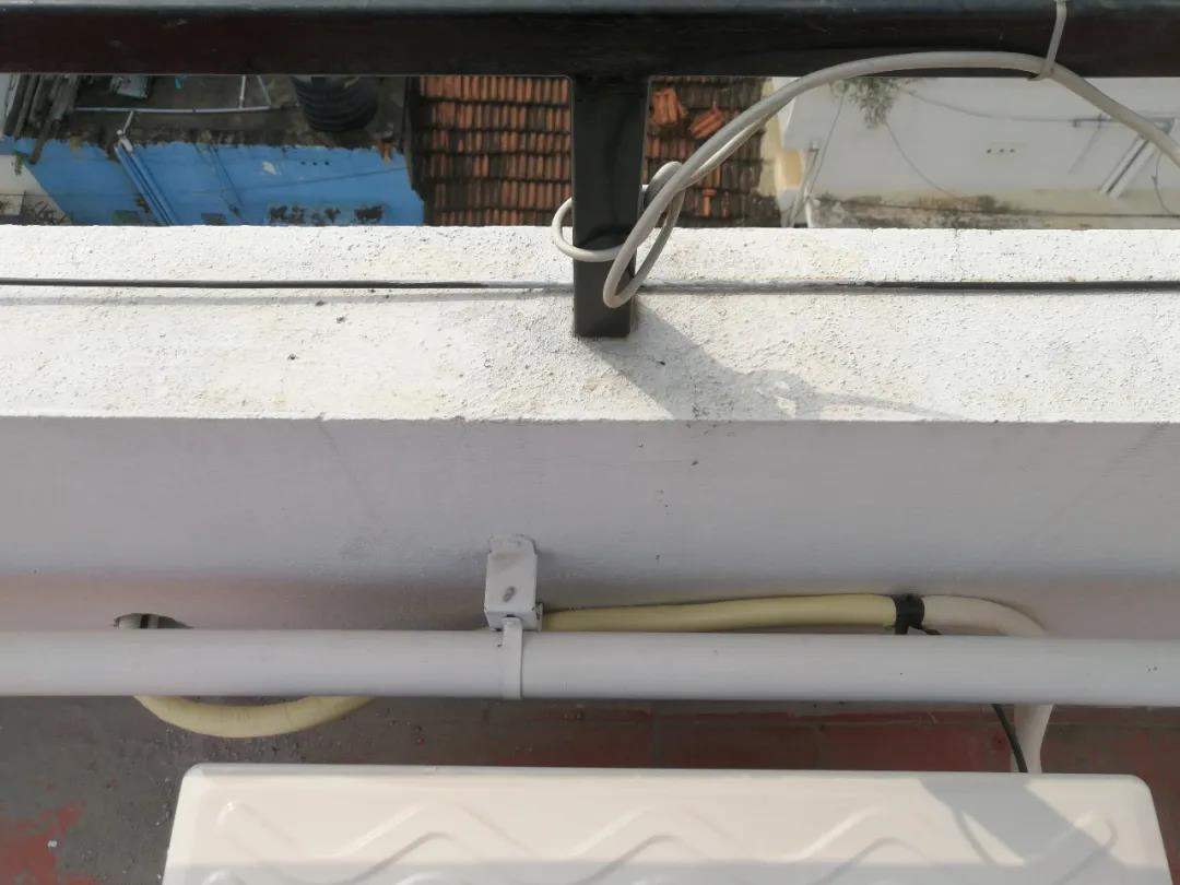 後來我自己上陣,教他們把釘窗簾杆的位置往兩邊挪,一邊直接釘在承重柱上,雖然兩邊一前一後,但總算是不影響空調和紗窗了。這還沒完,我家這個空調外機直接放在屋頂上,工人上樓一看就説管子不夠長,得要在屋頂牆上打洞,打完洞把管子拉上來卻發現長度是夠的,打洞根本是脱褲子放屁多此一舉。這次他們終於跟我説了一句抱歉,可洞已經開好了,不用也是浪費,烏龍一場。