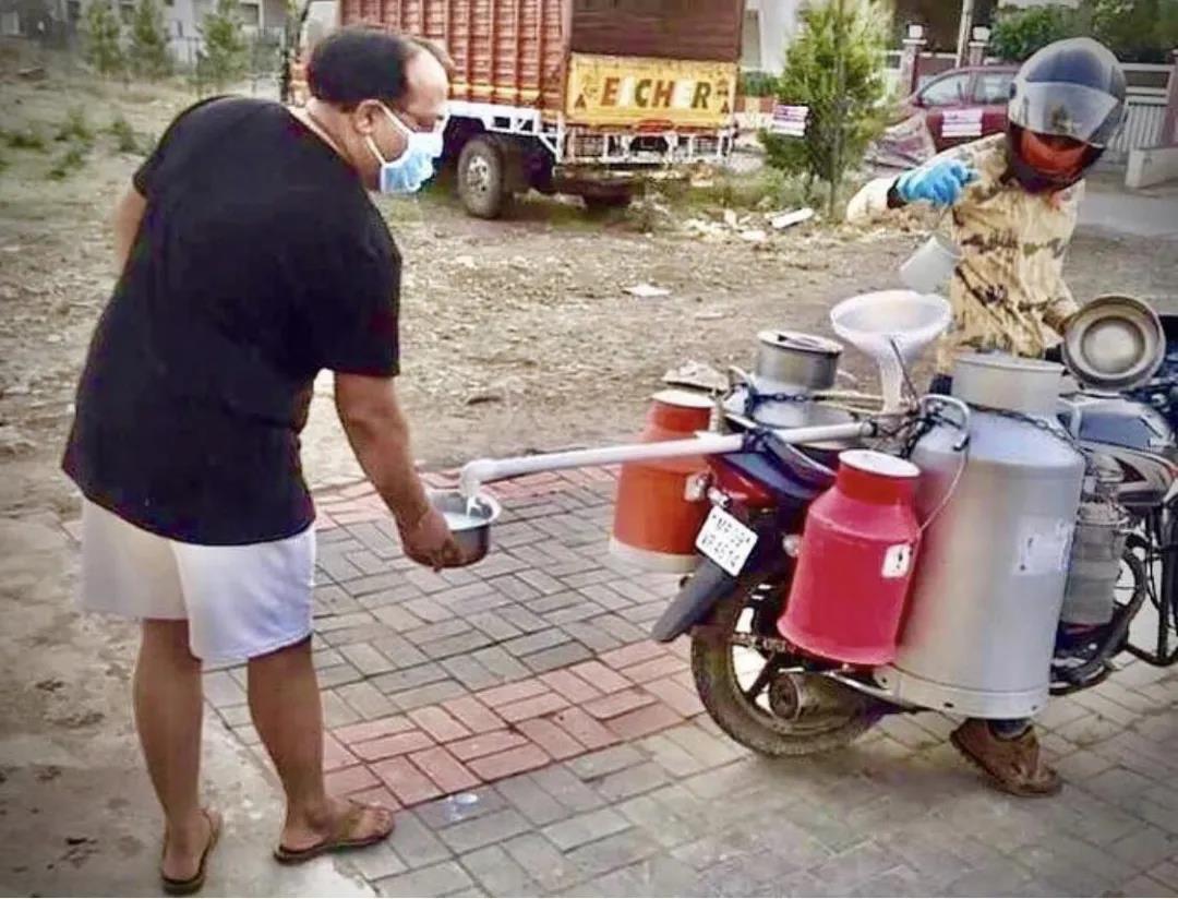 封城期間要求保持社交距離,於是就這樣送牛奶