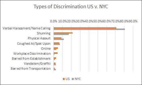 2020年3月19日至12月31日,美國和紐約市的亞裔歧視現象對比 圖源:STOP AAPI HATE