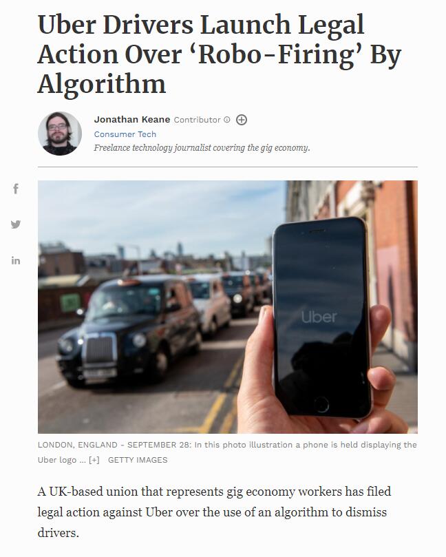 代表駕駛員的律師埃克爾(Anton Ekker)在英國衞報記者採訪時有非常精彩的觀點:“這場(官司)事關權力分配。問題的本質就是優步通過數據和自動化決策實施控制並阻止(駕駛員)瞭解這些”、“應用程序每天作出數百萬個這樣的決策,誰將獲得出行訂單、誰能夠獲得好單、誰會獲得短途單(駕駛員在短途單上大都不賺錢),優步的問題不止於此。問題(應用程序的決策)體現在方方面面,無所不包。算法和數據實施了很多控制,但平台上的人,也就是被控制的駕駛員經常根本沒有意識到它。”