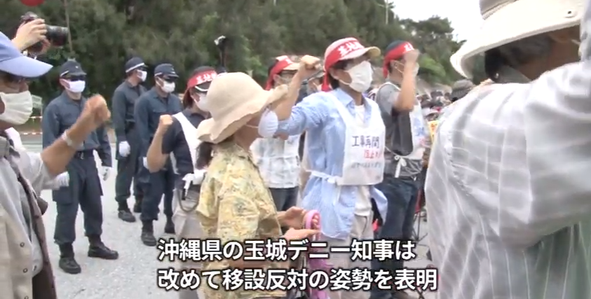 去年6月,名護市民在工地現場再次組織抗議活動 (共同社視頻截圖)