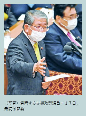 赤嶺政賢在17日眾議院預算委員會 (圖源:赤旗新聞)
