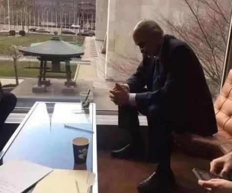 這是2018年4月9日,敍利亞代表巴沙爾·賈法裏在聯合國會議現場外落寞的身影。