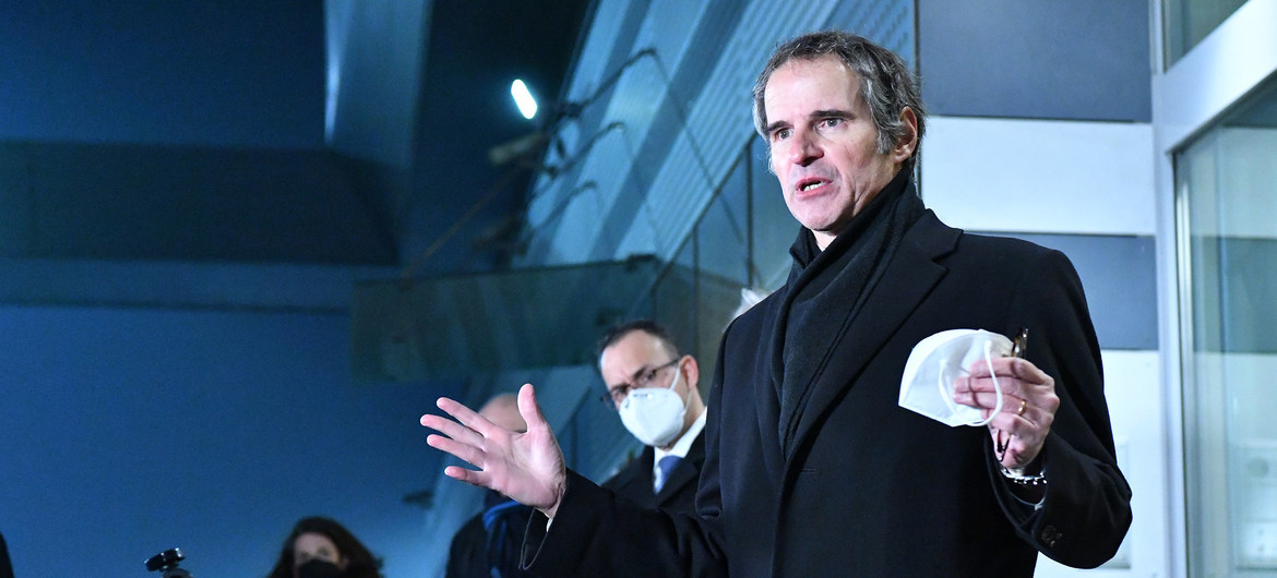 國際原子能機構總幹事格羅西2月21日晚間自德黑蘭返回維也納後,在維也納機場向媒體介紹了與伊朗達成的臨時技術諒解內容。(圖自聯合國網站)