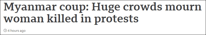 2月1日緬甸發生政治動盪後,緬甸國務資政昂山素季和其他政府高層的被捕引發了緬甸十多年來最大規模的抗議活動。動亂髮生後的第21天,包括第一大城市仰光在內的多地抗議活動仍在繼續,緬甸第二大城市曼德勒發生的反對軍方抗議示威遊行。緊急工作人員表示,警察和士兵向抗議者開槍示威,2人被槍擊身亡,多人受傷,這是在兩週多內最血腥的一天。