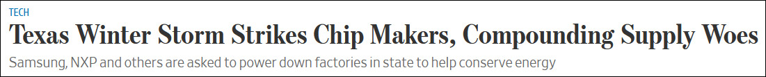比如,全球最大的芯片製造商之一、韓國三星電子的一位發言人表示,週二(16日)當地政府要求三星關閉該公司位於得州奧斯汀市的兩家工廠。三星希望能儘快恢復生產,目前工廠仍在等待當地電力供應商通知恢復生產的消息。