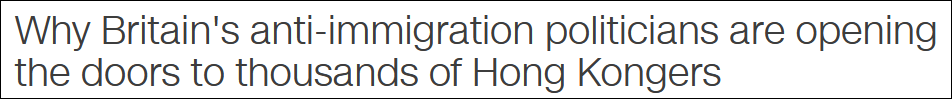 自從英國政府提出為持BNO的香港居民提供“訂製”的移民途徑,長期反對移民政策的英國保守黨政府和媒體便扭轉態度,對香港移民和他們所帶來的財富“敞開懷抱”。