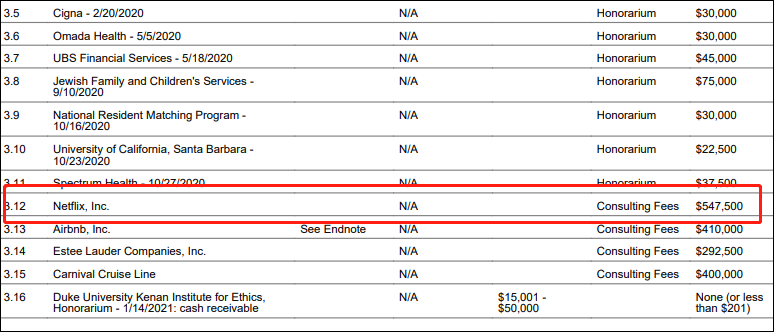 奈飛去年3月給穆西支付諮詢費54.7萬美元 (截自穆西的財務申報書)