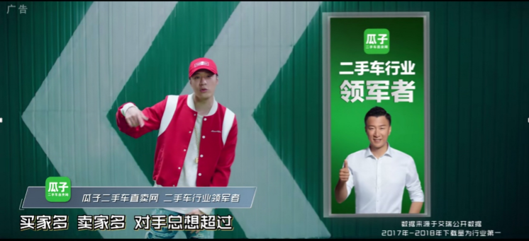 瓜子二手車在愛奇藝《中國新説唱》節目中投放廣告,令説唱選手使用“對手總想超過”等宣傳用語