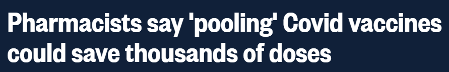 有醫院試驗發現,這種做法可以湊出佔總數十分之一的劑量,一家醫院每天可以額外接種數百人。然而,美國食品藥品監督管理局(FDA)以“可能導致交叉感染”的理由禁止混合藥劑,令他們只能眼睜睜看着疫苗被浪費。