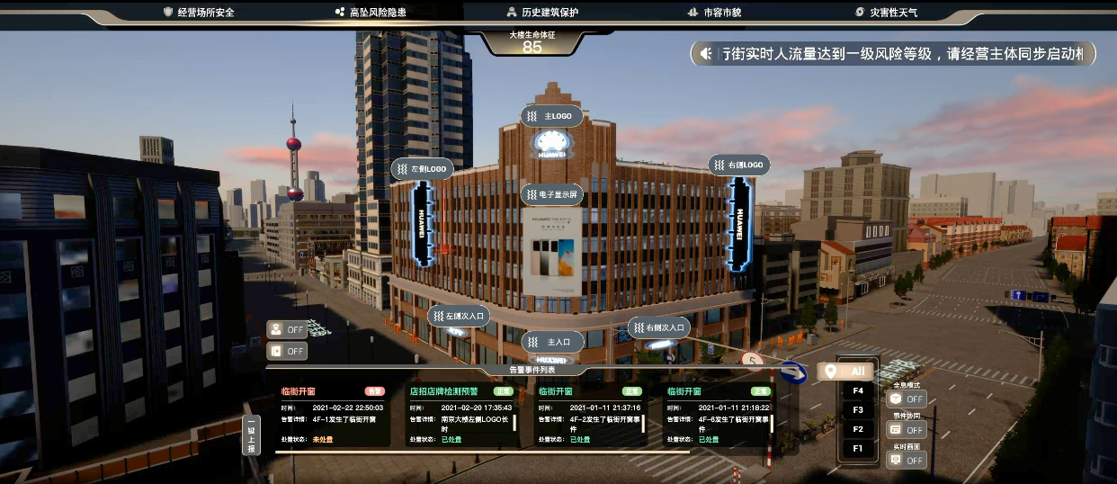 “城有萬千樓,樓是最小城”。在上海市城運中心推動下,黃浦區與華為集團聯合創新,選取百年曆史建築南京大樓作為“城市數字治理最小管理單元”試點。雙方基於城市智能體參考架構,融合華為雲、大數據、AI、邊緣計算、5G等多種業界先進技術,共同打造了1:1“活”的數字孿生大樓。