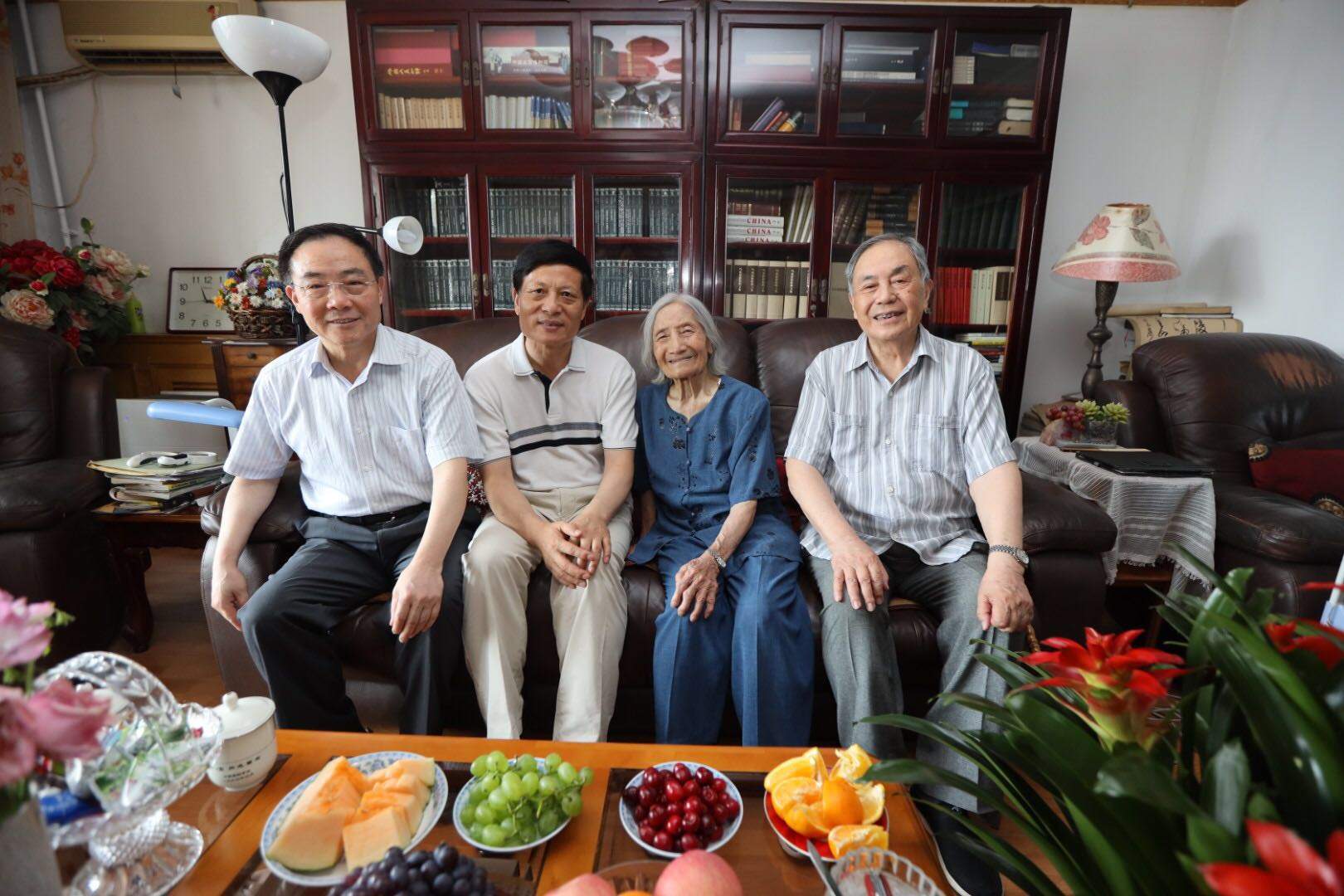 2019年7月8日,中國社會科學院院長、黨組書記謝伏瞻親切看望知名美學家、中國社會科學院原副院長汝信(右一)及夫人夏森。圖自中國社科院官網