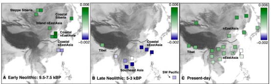 東亞南北方不同時期人羣的遺傳特點變化示意圖,圖|科學網