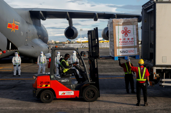 當地時間2月28日,由中國政府捐贈的首批科興新冠疫苗運抵菲律賓首都馬尼拉的維拉莫爾軍用機場,這也是該國自疫情暴發以來所接收到的第一款疫苗。當天,菲律賓總統杜特爾特親自前往機場等候迎接,並參加了疫苗交接儀式。