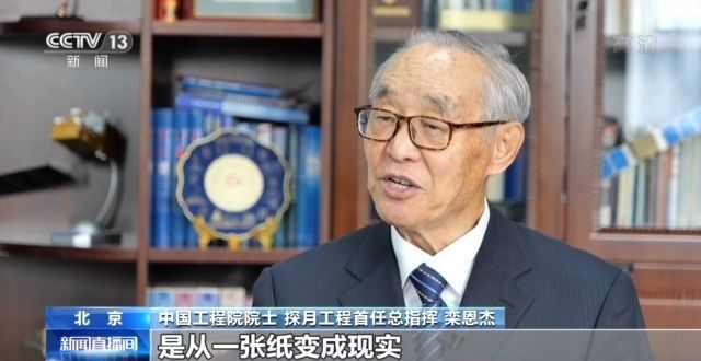 中國工程院院士、探月工程首任總指揮 欒恩傑:一定要去,我跟你説過,當嫦娥一號起步的時候,我們充滿了自信,向中央的承諾要完成三步走,我們會一步一步完成的。你知道下定決心、確定目標和實現這個目標差距是質的變化,是從一張紙變成現實,一個設想,一個夢想變成我們今天的現實,擺在世界上的現實。所以我説開始中國人就説要有頭有尾。
