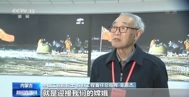 **中國工程院院士 探月工程首任總指揮 欒恩傑:**待到四子王旗會,工程大計好收官。我今天來,就是迎接我們的嫦娥從月亮返回它的家鄉,返回它的祖國,所以我來到這裏心情非常激動。