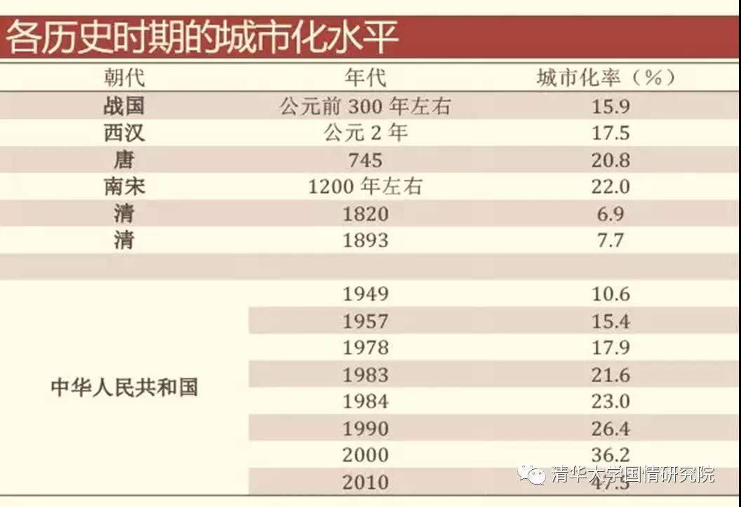 這張表可以看出,春秋戰國的時候中國城市化水平就已經達到15.9%。到了1957年,過了幾千年,還不過是15.4%,基本沒有變化。中國歷史上城市化水平最高的是南宋,城市化水平達到22%,這一水平一直到1984年才再次被超過。