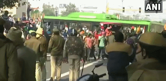 印度農民示威者和警察對峙(圖源:澎湃影像)