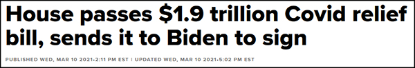 美國眾議院曾於2月27日投票通過1.9萬億美元經濟刺激法案,但由於法案3月6日移交參議院表決時作出了一定修改,民主黨人放棄了將聯邦最低工資提高到每小時15美元的條款,並對失業救濟金等內容作出一定限制。因此眾議院必須再次對修改後的法案表決。