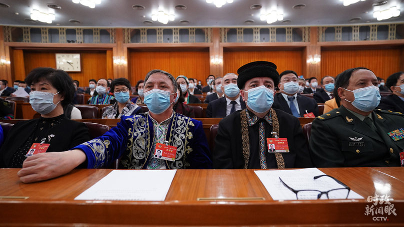 △3月8日下午,十三屆全國人大四次會議舉行第二次全體會議,代表們聽取和審議全國人大常委會工作報告和兩高報告。(總枱央視記者王哈男拍攝)