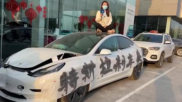 近日,一名河南女子手持喇叭坐在特斯拉Model3車頂維權,稱2月其與家人在駕駛特斯拉出行期間,車輛剎車失靈,連續追尾輛車,致車內兩人受傷。