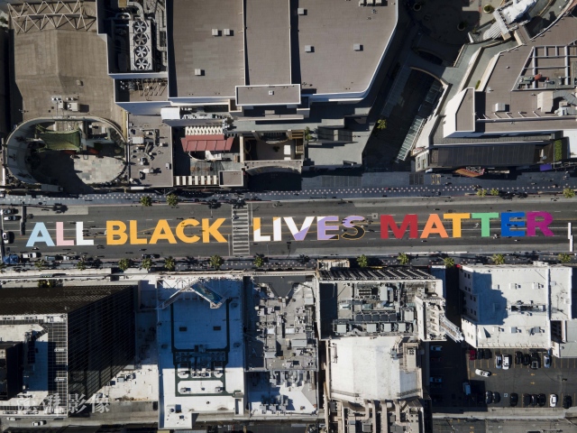 美國洛杉磯,好萊塢大道“所有黑人的命很重要”標語(圖源:澎湃影像)